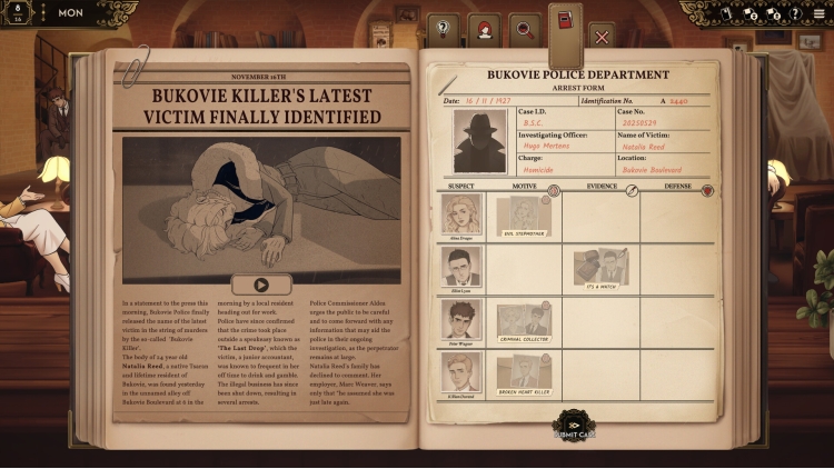 استمع إلى قصص زبائنك وتعرّف على حياتهم بينما تكشف لغزًا يُمسّ كل طبقة من طبقات مجتمع بوكوفي، من السكارى الأنيقين الذين يُبذرون المال على الكوكتيلات، إلى رجال الشرطة المُحتالين والفاسدين الذين يحاولون جرّك إلى مُكائدهم المُريبة.