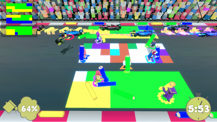 بالطبع، يمكنك دائمًا الانتقال من عرقلة بعضكم البعض عن طريق الخطأ إلى القيام بذلك عمدًا. وضع المنافسة الجديد والمحسّن يضع اللاعبين في سباق ليصبحوا الرسامين العظماء القادمين، محاولين إكمال اللوحة قبل الفريق المنافس. إنها مسابقة الرسم المثالية: هل يمكنك إكمال اللوحات قبل الفريق الآخر، والتغلب على التحديات الفريدة لكل لوحة، وصعوبات التواصل بين الفريق، وبالطبع ضغط فرش المسابقة...