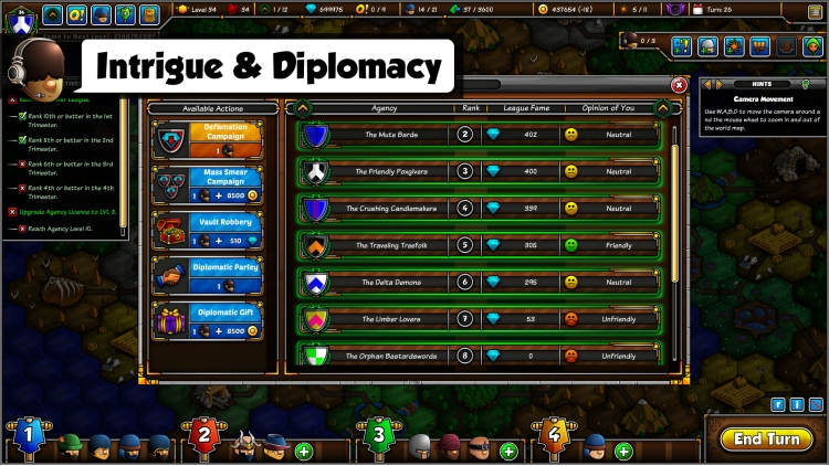 إلى جانب إدارة عقودك ووظائفك، ستقوم أيضًا بتوظيف موظفي دعم، والتداول مع التجار المحليين، وتطوير مقر وكالتك، والبحث عن قدرات وترقيات جديدة، وتوسيع نطاق وصولك عبر أستريوس، والتفاعل مع المنافسين باستخدام المؤامرات والإجراءات الدبلوماسية.