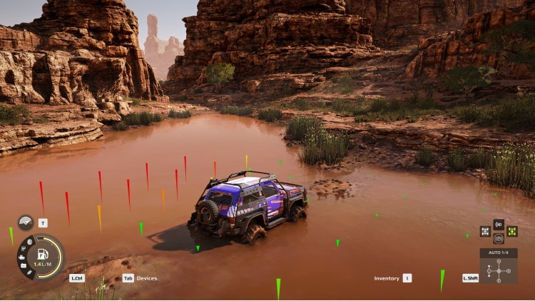 ● خطط جيدًا لعبور المناطق الوعرة باستخدام مركبتك المزودة بترسانة من الأدوات المتطورة؛ مثل تثبيت المراسي لصعود المنحدرات الصعبة أو تنشيط مسبار الصدى لاستكشاف عمق المياه.