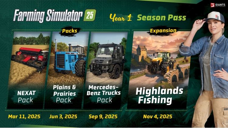 وسّع نطاق لعبة Farming Simulator 25 مع المزيد من الآلات والعلامات التجارية وأسلوب اللعب وبيئة جديدة كليًا لتنمية مشروعك الزراعي! يمنحك اشتراك الموسم الأول إمكانية الوصول إلى ثلاث حزم رسمية وتوسعة كبيرة من تطوير GIANTS Software، كما هو موضح أدناه.