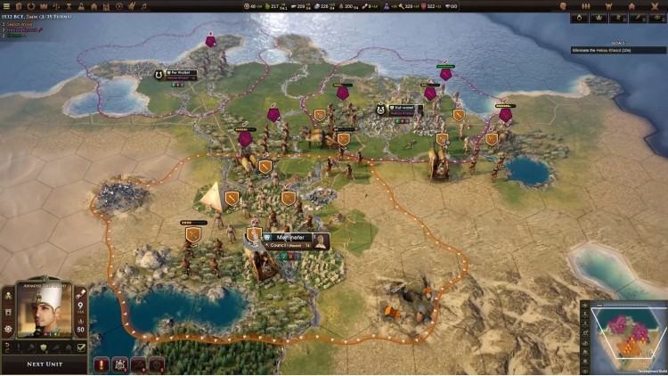 التوحيد: ابدأ كقوة إقليمية صغيرة وأنشئ واحدة من أعظم إمبراطوريات العالم القديم. قُد طيبة ضد الهكسوس وكرمة لتوحيد كيميت وبدء فترة المملكة الحديثة.