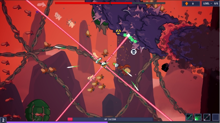 تلعب دور روبوت أرسلته البشرية إلى كوكب فضائي، مُكلفًا بمهمة القضاء على الحياة البرية المعادية فيه. مُسلحًا بخطاف تسلق كوسيلة تنقلك الوحيدة، ستتأرجح وتندفع وتُطلق نفسك عبر ساحات معارك فوضوية بينما تُمزق ترسانتك تلقائيًا موجات الأعداء.