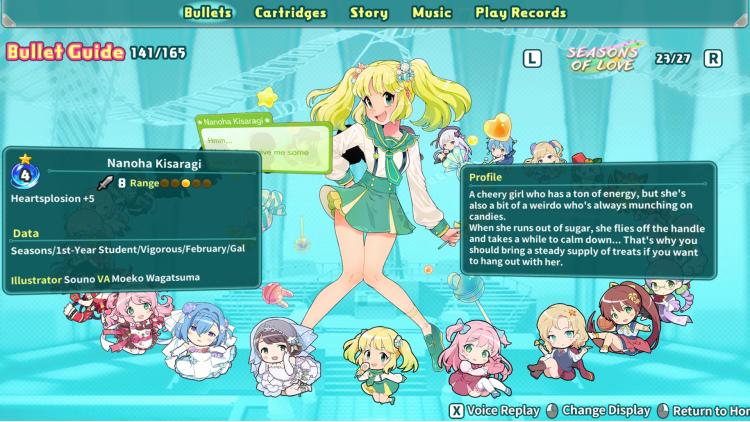 من Seasons of Love إلى The Aquarhythm Deep وPhoenix Gunner، استوحيت كل خريطة من خرائط اللعبة السبع من أنواع الألعاب الكلاسيكية، من ألعاب محاكاة المواعدة إلى ألعاب الإيقاع وألعاب الزحف في الأبراج المحصنة.