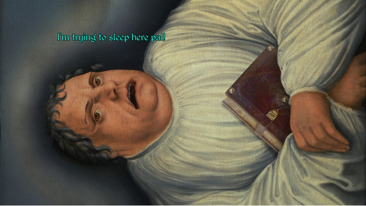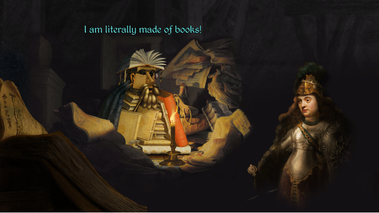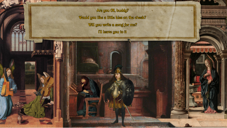 ستأخذكم رحلتكم عبر مشهدٍ غنيّ التفاصيل، مبنيّ من مئات لوحات عصر النهضة المختلفة. ستسرقون سفينة، وتُطعمون حمارًا، وتُشاركون في مسابقة مواهب، وتُساعدون ساحرًا غير كفؤ في الشارع، وتُغنّون، وترقصون، وتعزفون على الناي (السحري؟)، وتُلامسون وجه رجل، وتبحثون عن كنز، وتُحادثون ربنا الله القدير... لكن هل ستجدون بطرس السماوي؟ وإن وجدتموه، فكيف ستنتقمون منه؟