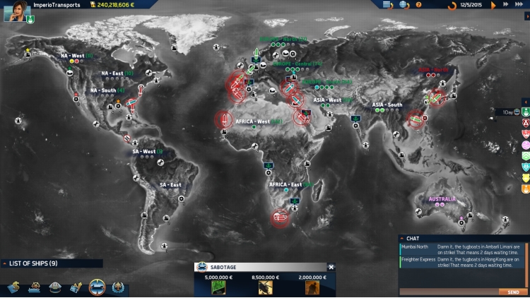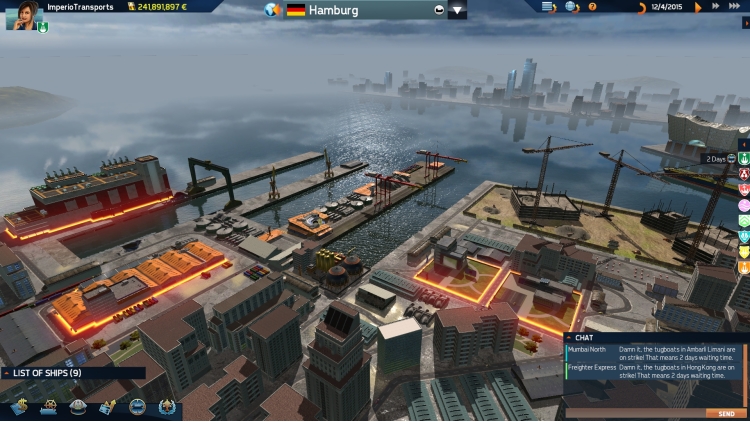 ابدأ رحلتك مع شركة الشحن الجديدة في أحد الموانئ الستين، وابدأ مسيرتك المهنية بأسطول صغير من سفن Feeders القديمة المتهالكة، وهي أصغر أنواع السفن في TransOcean 2: Rivals. اختر ميناءك بعناية، وأكمل عقودك الأولى مع الموانئ القريبة لتكوين أول أموالك. أدر أعمالك بذكاء، وخطط لرحلاتك ببصيرة، ولا تستهن بالعوامل الخارجية مثل سعر النفط أو الشركات المنافسة. هكذا ستوسع أسطولك تدريجيًا وتؤسس فروعًا في جميع أنحاء العالم. هل أنت مستعد لمواجهة جميع التحديات؟
