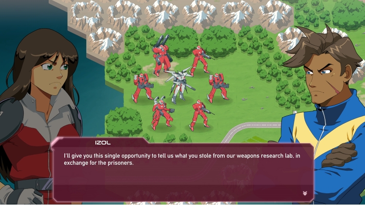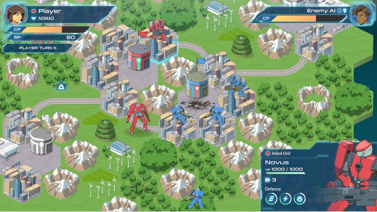 اختر من بين أربعة قادة، يمثل كل منهم فصيلًا مختلفًا ويحمل معه قوته الفريدة وسماته وأسلوب لعبه. فكر تكتيكيًا أثناء تحريك وحداتك، والاشتباك مع الميكا المنافسة، ومشاهدة النتيجة في تسلسلات معركة درامية مستوحاة من الرسوم المتحركة اليابانية في التسعينيات.